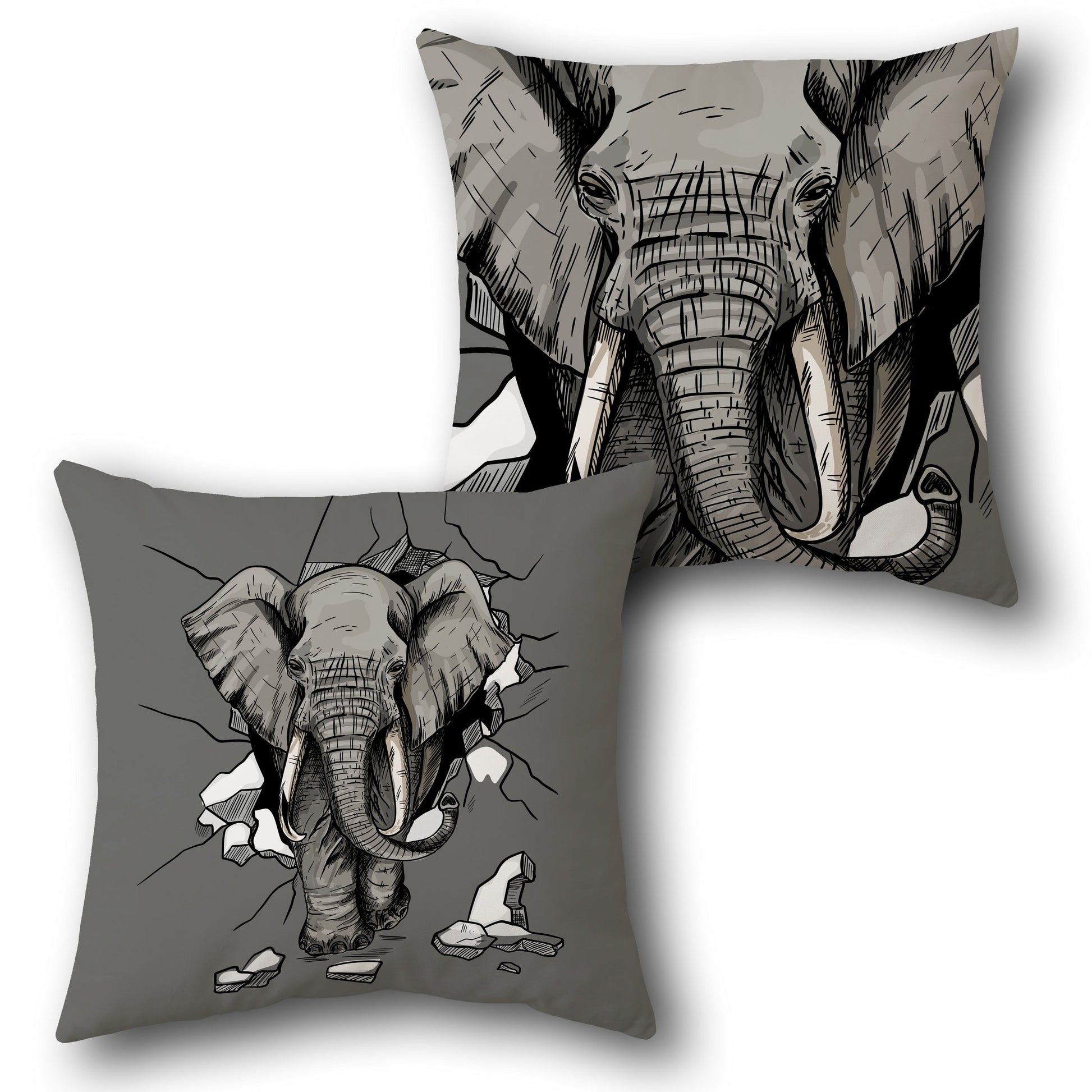Bring bold energy and a dramatic visual impact to your room with this dynamic elephant Cushion . Featuring highly detailed, monochrome illustrations of elephants in a 3D breakthrough effect, one elephant appears to charge through a cracked wall while the other stares powerfully forward. These Cushions are perfect for modern, industrial, or wildlife-themed spaces that need a strong, artistic statement.