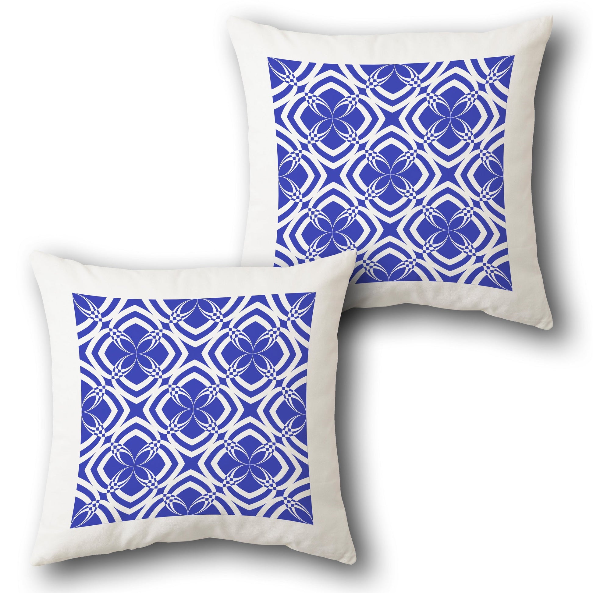 Bring a touch of elegance to your home with the Azure Lattice Cushion . This includes square Cushions, each adorned with a sophisticated blue geometric lattice pattern on a crisp white background. The intricate design features interlocking floral and diamond shapes, creating a timeless and versatile look. Perfect for adding a subtle yet stylish accent to your living room, bedroom, or cozy reading nook.