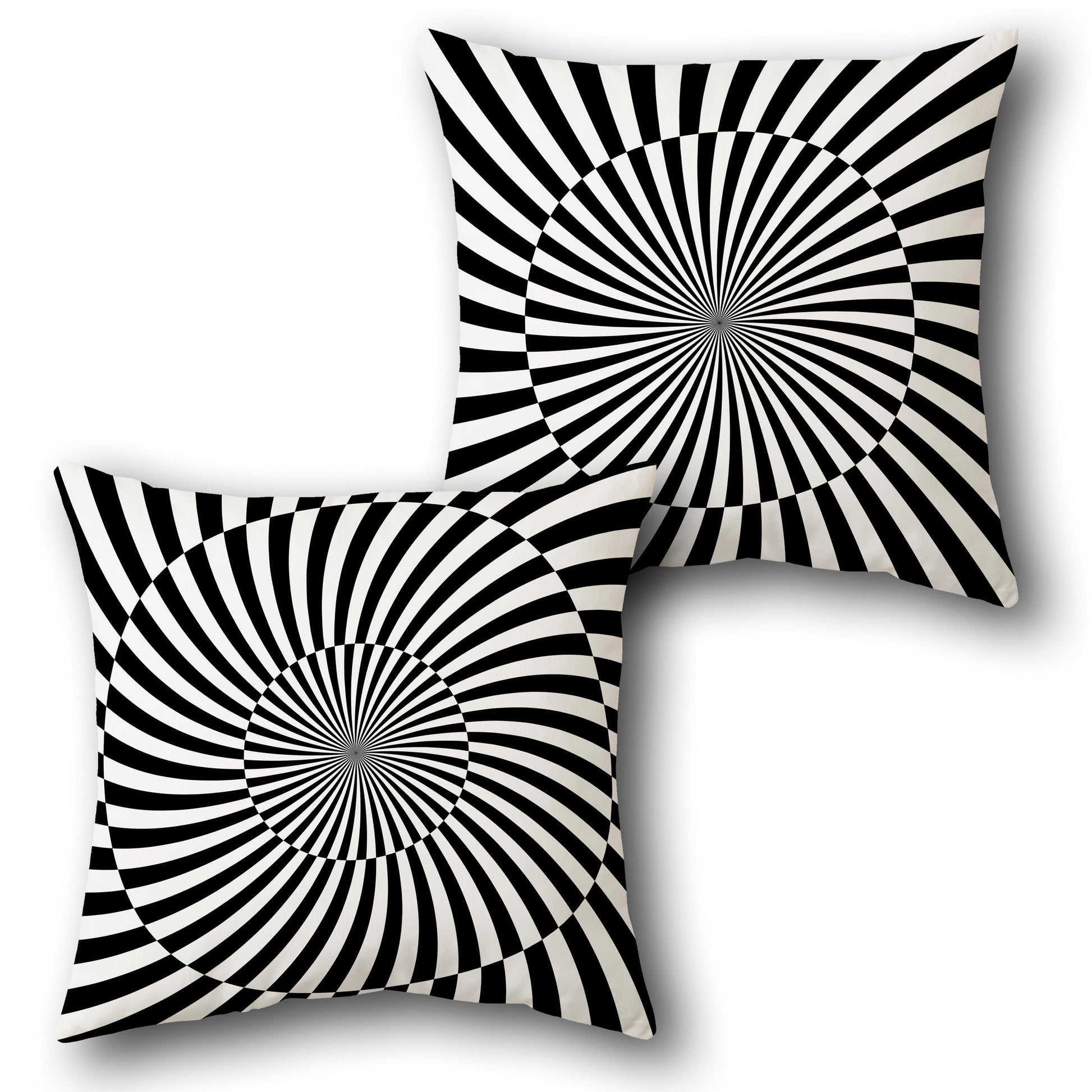 This cushion features a mesmerizing black and white swirling vortex design on both the front and back, creating an optical illusion effect. The bold contrast of black and white stripes radiates from the center, giving a dynamic and modern look to any space.