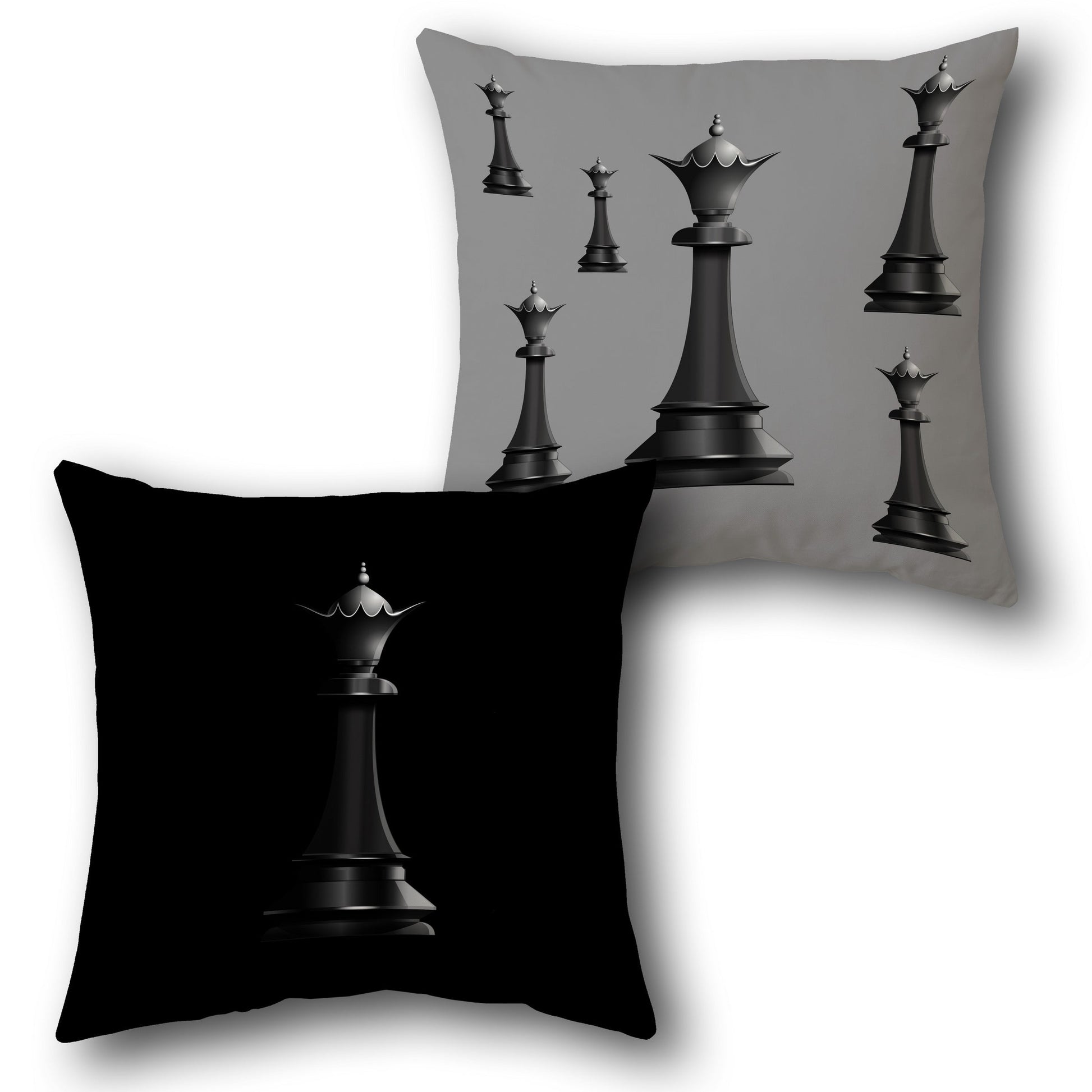 Black Chess Queen Decorative Design Cushion Single (Front & Back)