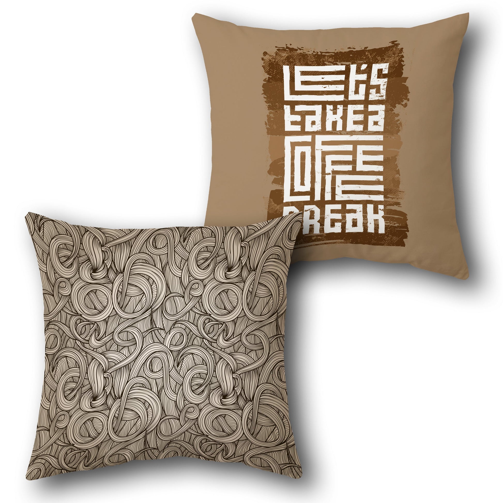 Add a cozy, artistic touch to your relaxation space with the Coffee Break Cushion. One Cushion features a bold geometric typography design that reads "Let’s Take a Coffee Break" in vintage-style block letters on a warm brown background. The second Cushion balances the theme with a mesmerizing abstract line art pattern in earthy tones, evoking the feel of tangled threads or steam swirls. Ideal for coffee nooks, couches, or lounge areas.