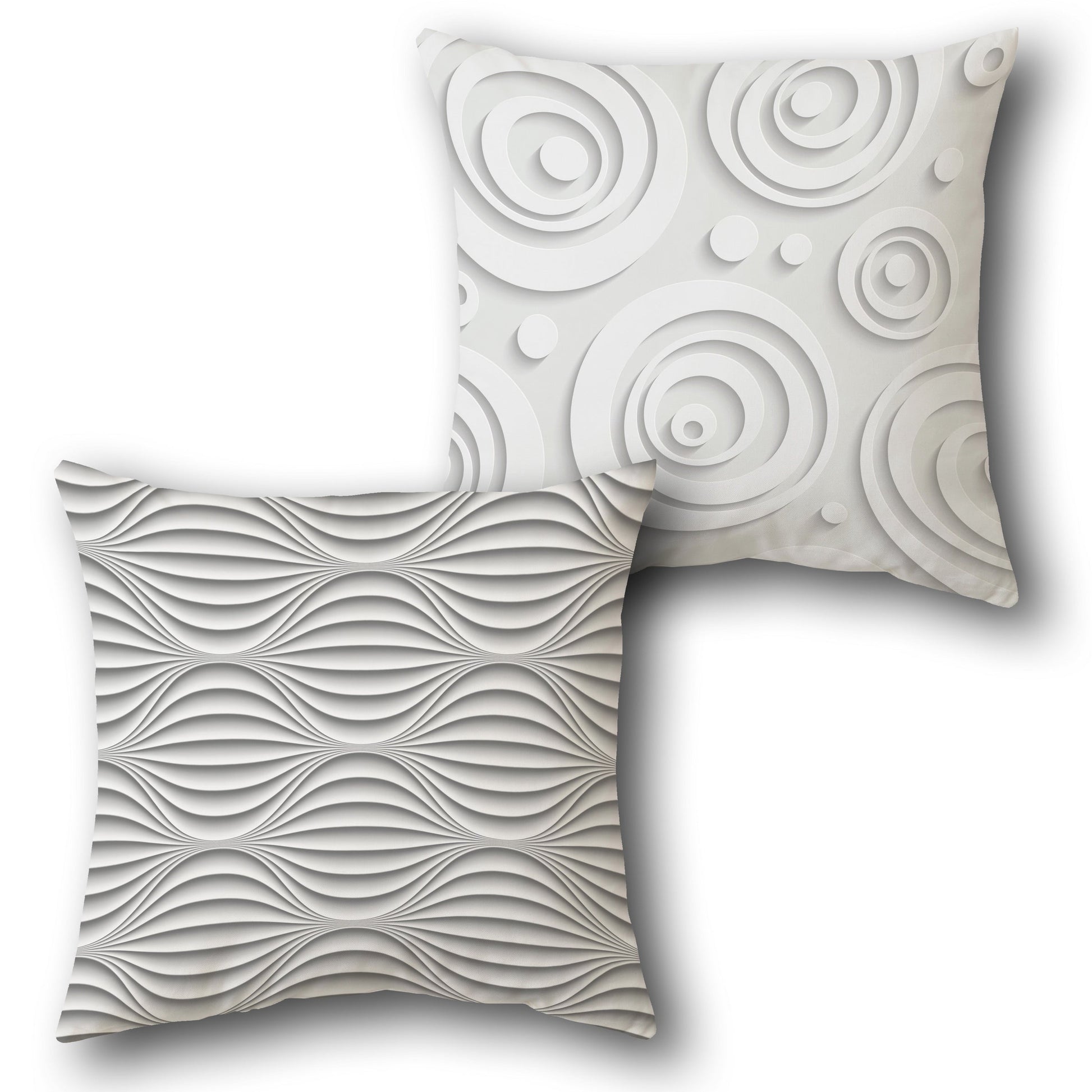 Elevate your décor with this sophisticated white 3D embossed Cushion , featuring complementary geometric patterns in a monochromatic palette. One design showcases flowing wave-like lines with soft gradient shadows for a calming, sculptural effect, while the other presents concentric circles and raised dots for a dynamic, artistic feel. These Cushions add luxurious texture and minimalist elegance to modern, Scandinavian, or monochrome interiors.