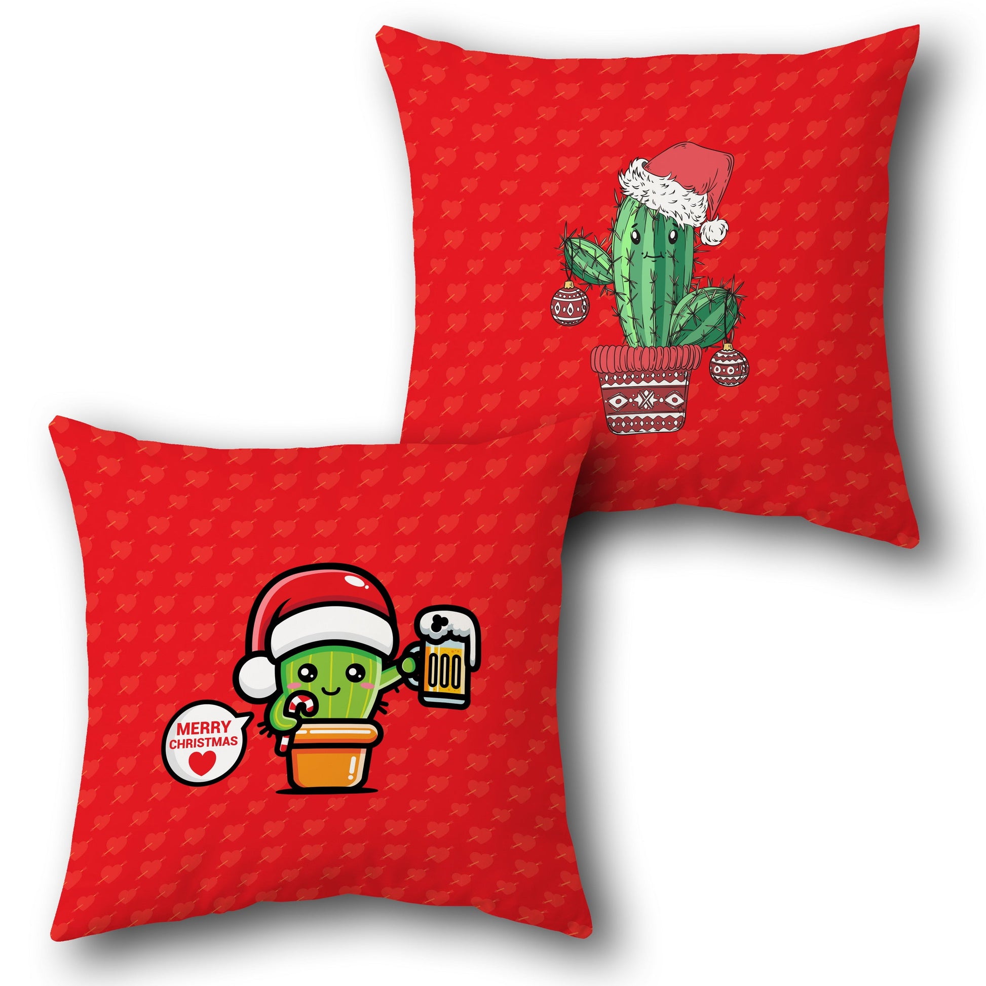 Festive Cactus Christmas Design Cushion Single (Front & Back)