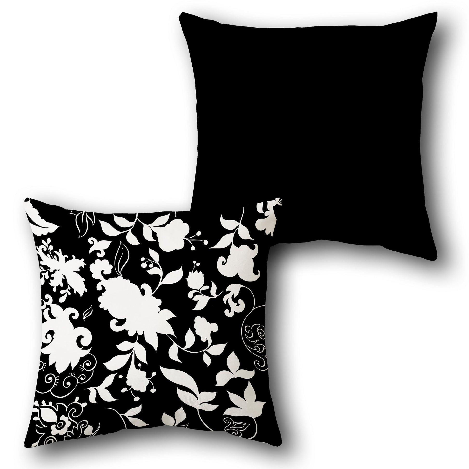 This single-sided cushion features a detailed floral pattern on the front in white with a black base, creating a classic and elegant contrast. The back side is a solid black, offering a sleek and minimalist look. Perfect for adding a timeless touch to your home decor.