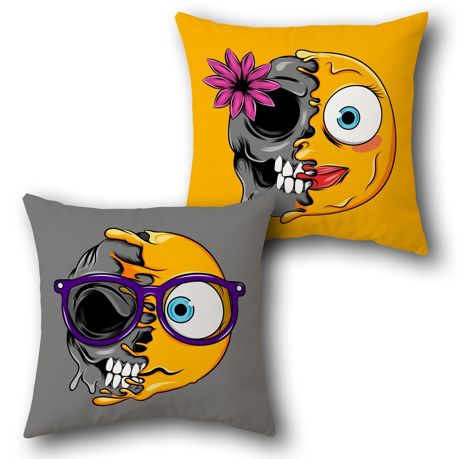 Flower Power Skull Emoji Cushion (Double-Sided | Cute Meets Creepy)