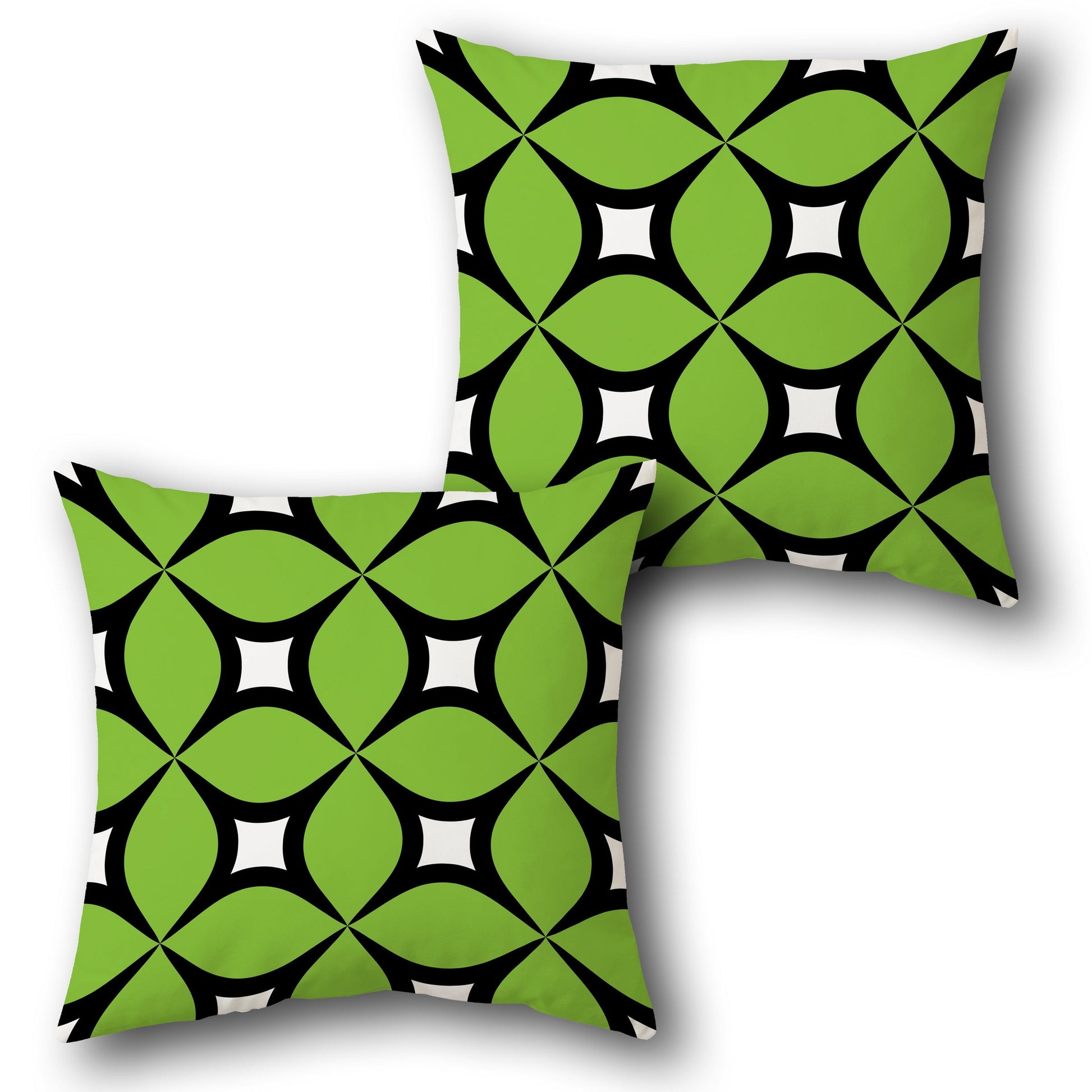 Add a bold touch to your decor with this of 2 throw Cushions featuring a striking geometric pattern. The design showcases vibrant green petal-like shapes with black outlines, creating a dynamic contrast against a white base color. Perfect for modern living rooms, bedrooms, or office spaces, these Cushions bring a pop of color and contemporary style to any ting.