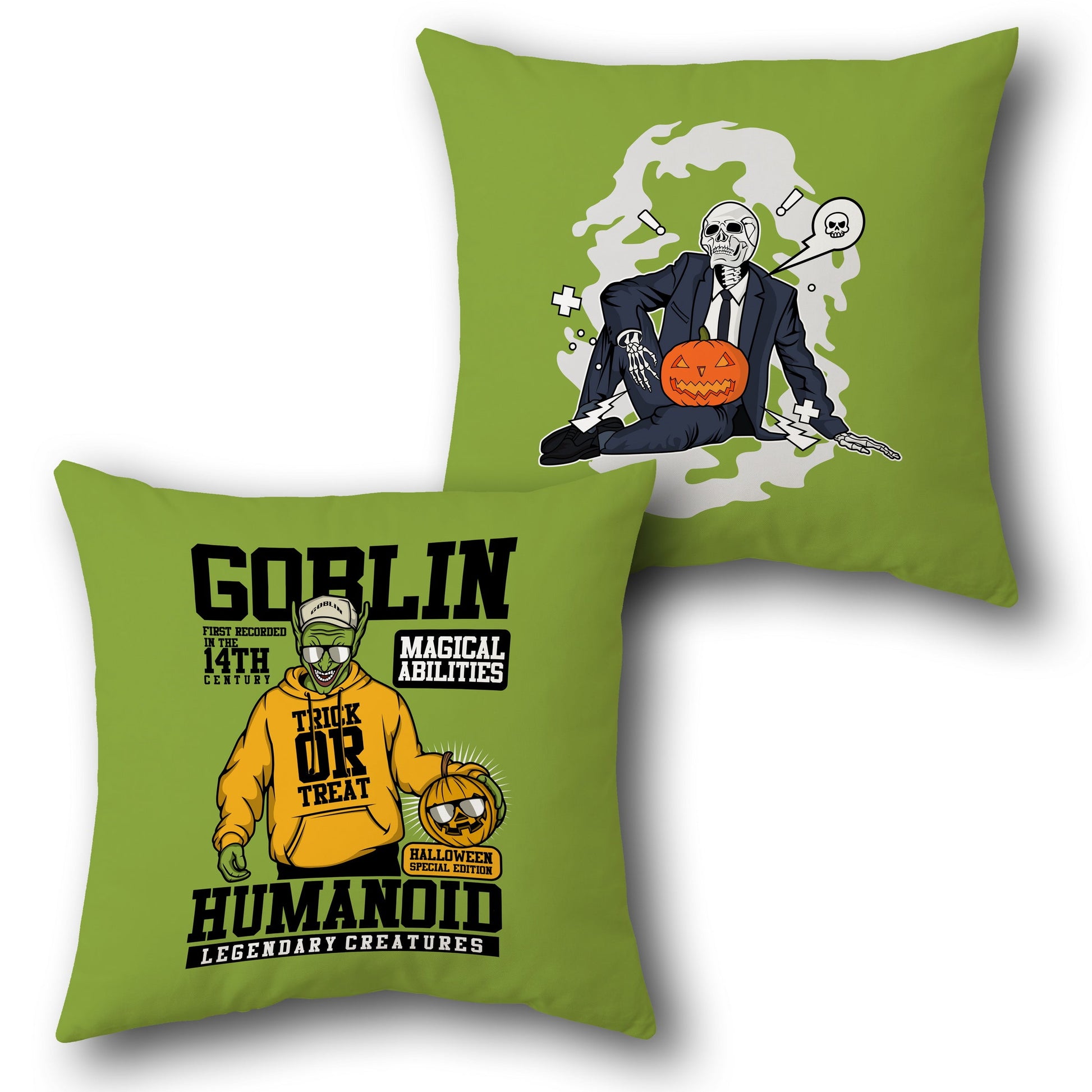 Unleash your spooky side with the Halloween Legends Cushion ! Featuring eye-catching designs, one side showcases a stylish skeleton in a suit with a carved pumpkin, while the other highlights a modern goblin dressed for trick-or-treating. With references to magical abilities and legendary creatures, these Cushions are perfect for Halloween décor or year-round fans of the macabre and mythical.