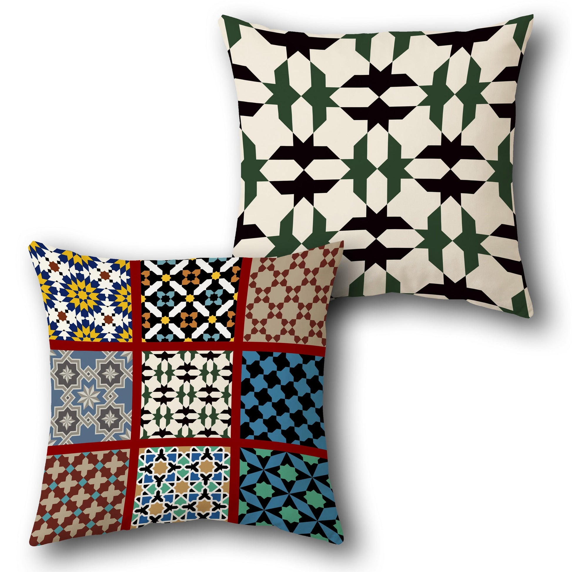 Embrace the mystery of a tropical night with the Navy Midnight Palms Decorative Cushion . This of square Cushions features a deep navy base color, evoking the night sky. One Cushion showcases white silhouettes of palm trees against the navy background, while the other remains a solid navy for a sleek contrast. Perfect for adding a touch of serene elegance to your sofa, bed, or chair.