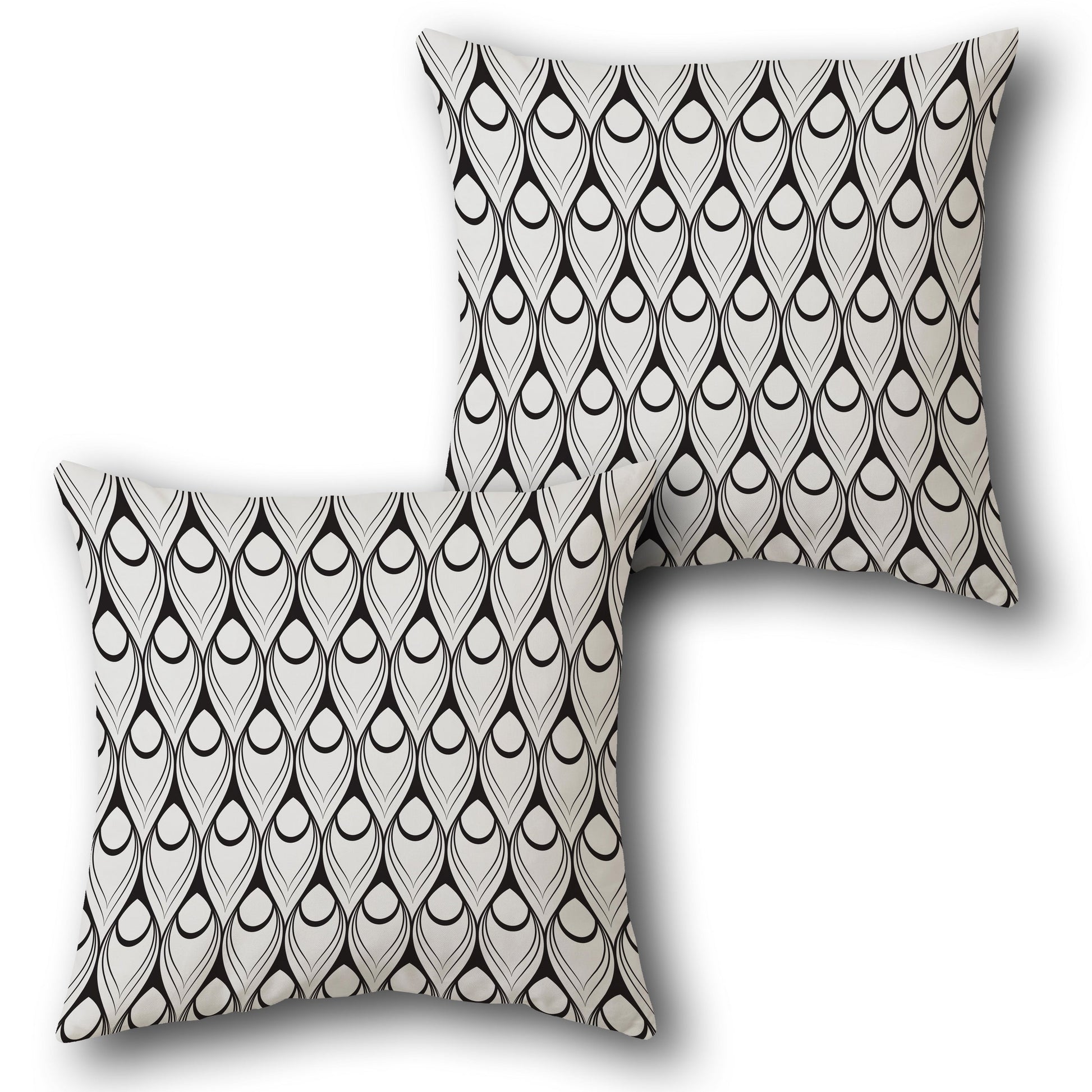 Monochrome Peacock Feather Pattern Design Cushion Single (Front & Back)