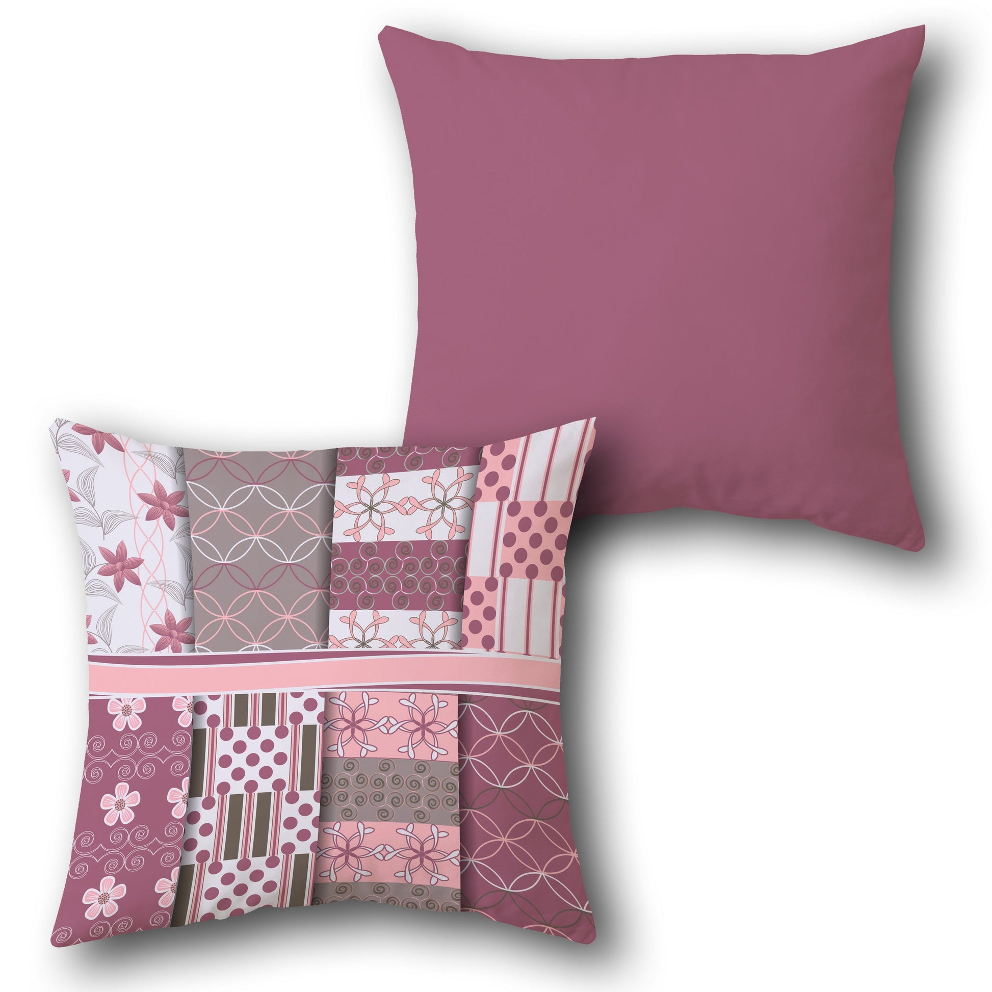 "Patchwork Pink & Solid Plum " Design Cushion Single (Front & Back)