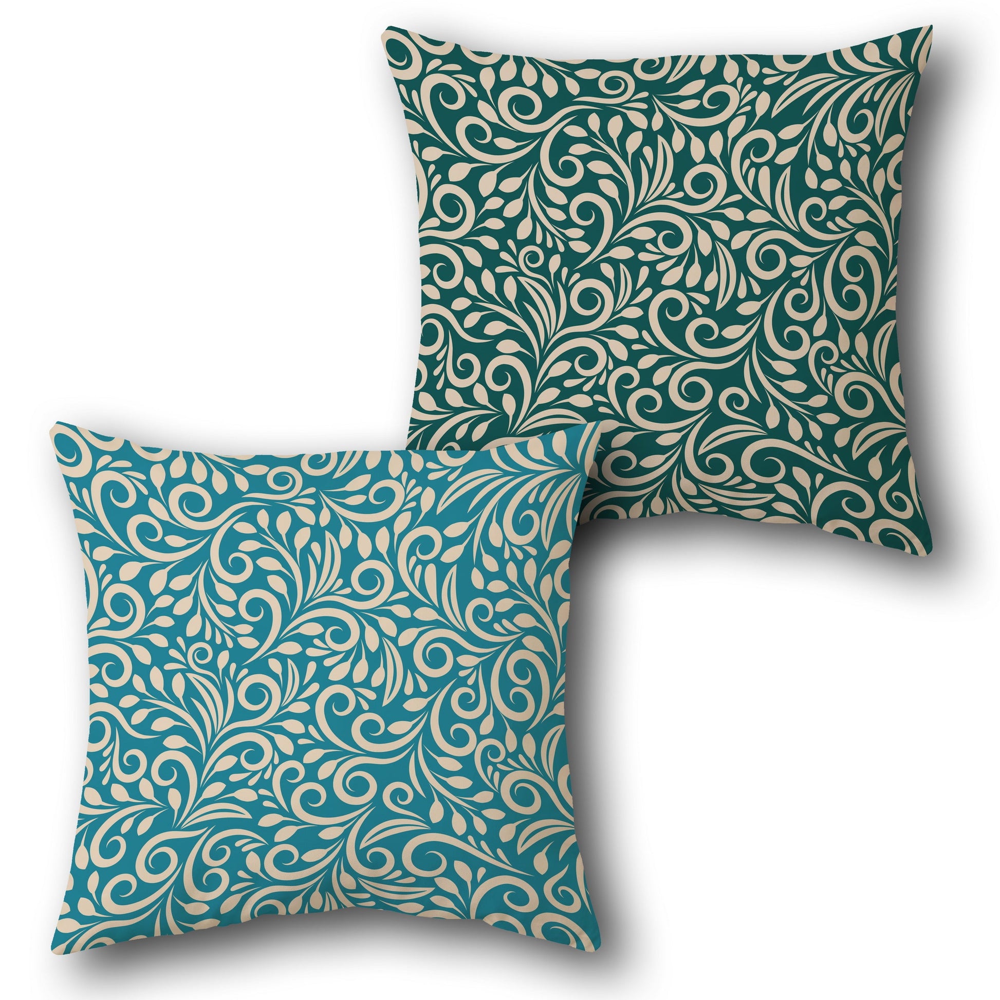 Bring a touch of nature-inspired elegance with this of throw Cushions. One Cushion features a swirling leaves pattern in a calming teal with cream accents, while the other showcases the same intricate design in a deeper navy blue with cream highlights. The organic, flowing leaf pattern adds a serene and sophisticated vibe, perfect for a living room, bedroom, or cozy reading nook with a modern or classic decor style.